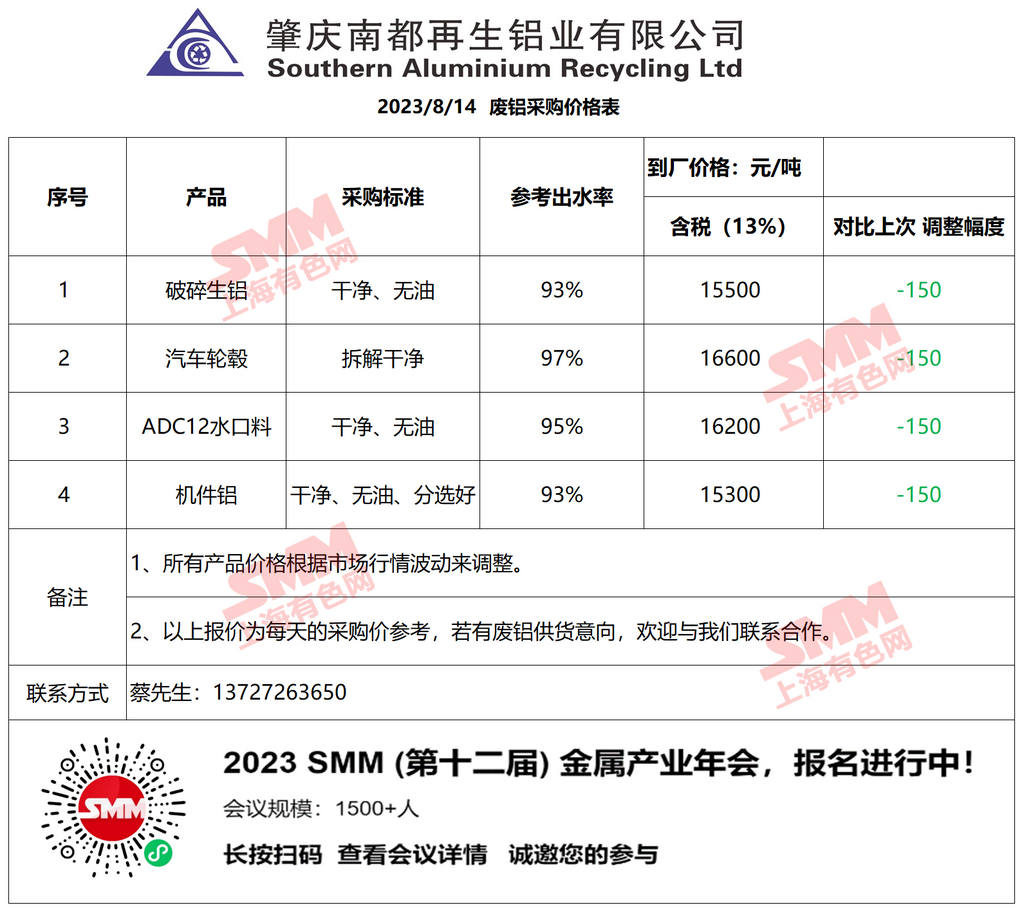 今日南都再生铝业 废铝采购报价已更新,有货的朋友欢迎联系我们!