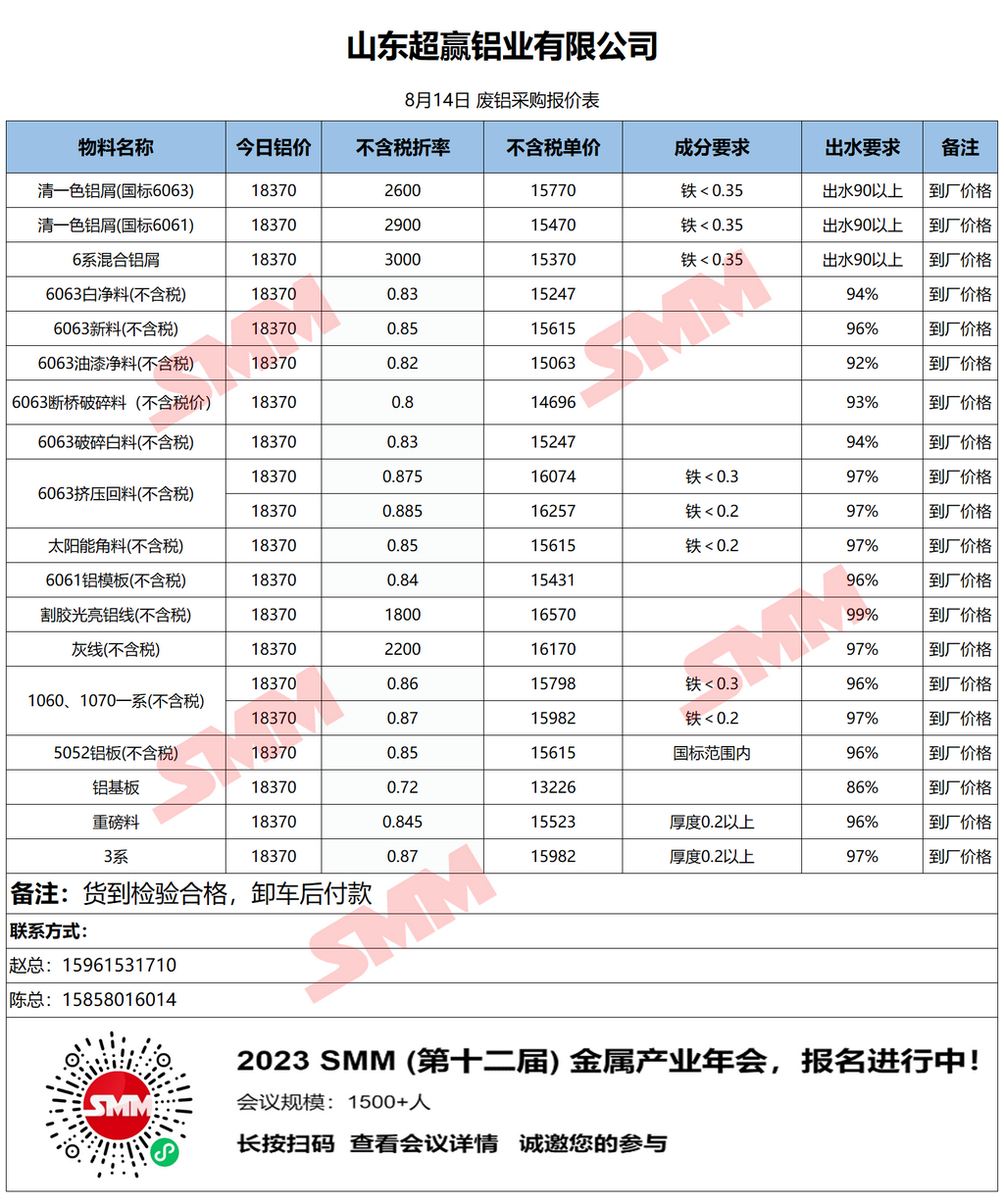 今日超赢铝业 废铝采购报价已更新,有货的朋友欢迎联系我们!