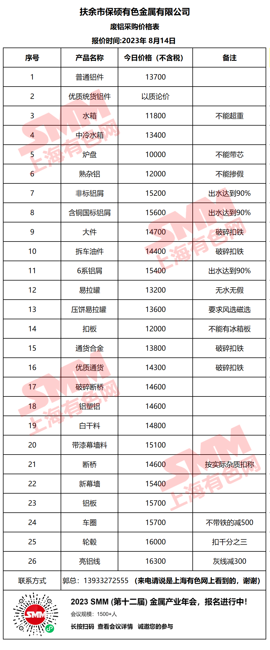 今日扶余市保硕有色金属有限公司 废铝采购报价已更新,有货的朋友欢迎联系我们!