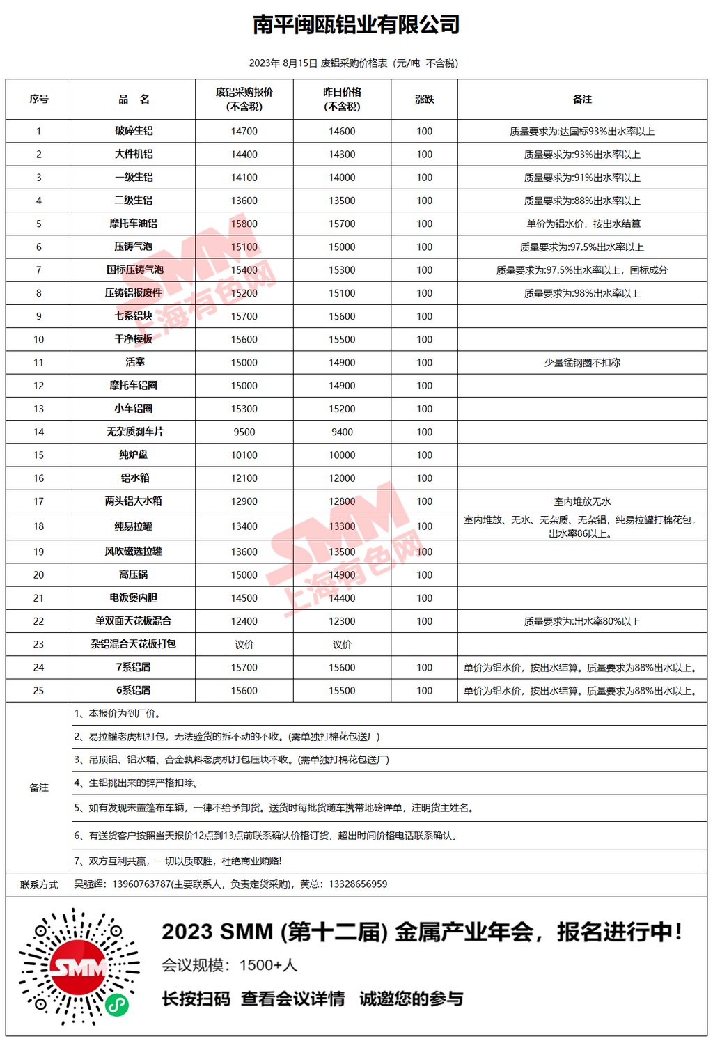 今日南平闽瓯 废铝采购报价已更新,有货的朋友欢迎联系我们!
