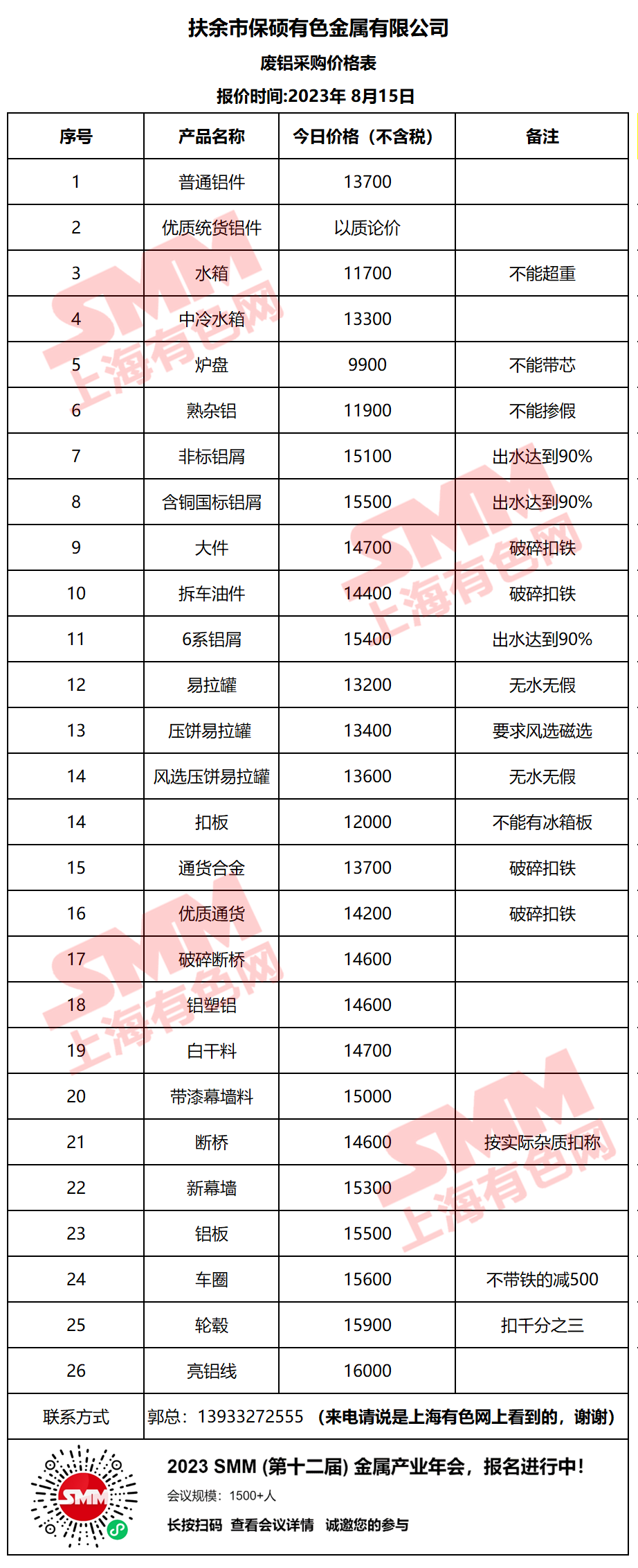 今日扶余市保硕有色金属有限公司 废铝采购报价已更新,有货的朋友欢迎联系我们!