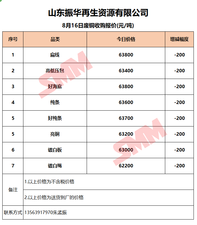今日山东振华,废铜收购报价已更新,有货的朋友欢迎联系我们!