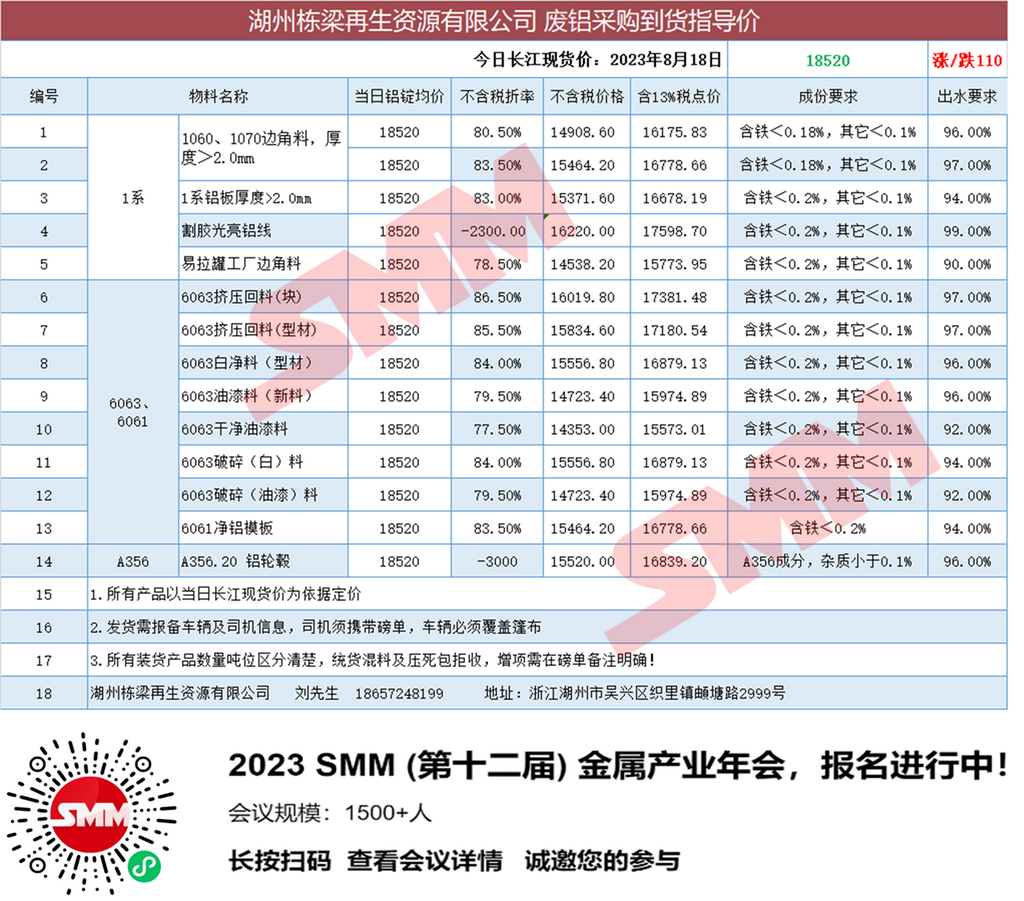 今日湖州栋梁 废铝采购报价已更新,有货的朋友欢迎联系我们!