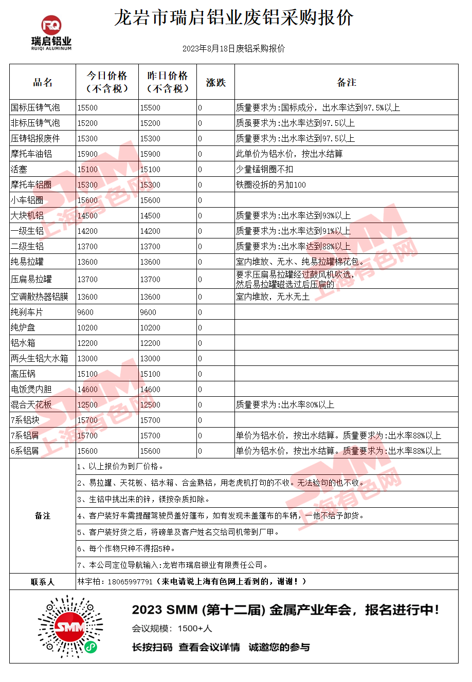 今日龙岩瑞启 废铝采购报价已更新,有货的朋友欢迎联系我们!