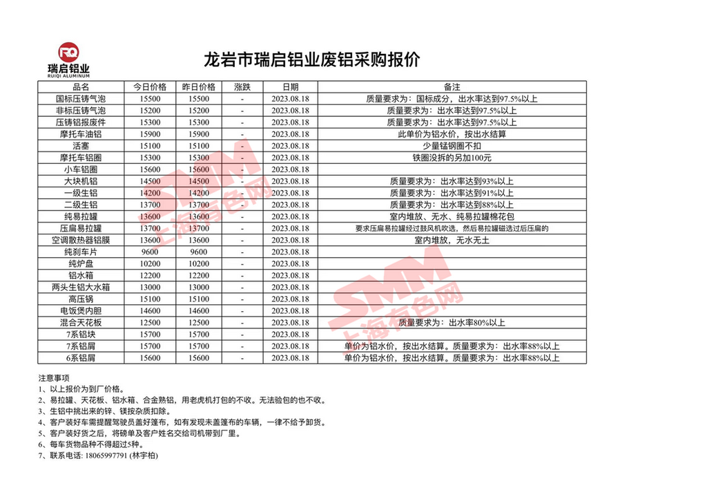 今日龙岩瑞启 废铝采购报价已更新,有货的朋友欢迎联系我们!