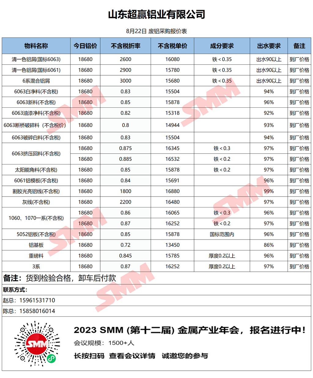 今日超赢铝业 废铝采购报价已更新,有货的朋友欢迎联系我们!