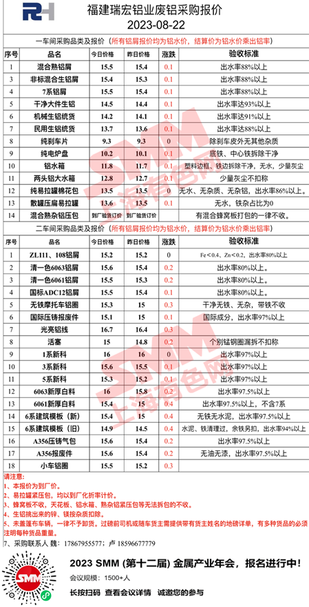 今日福建瑞宏 废铝采购报价已更新,有货的朋友欢迎联系我们!