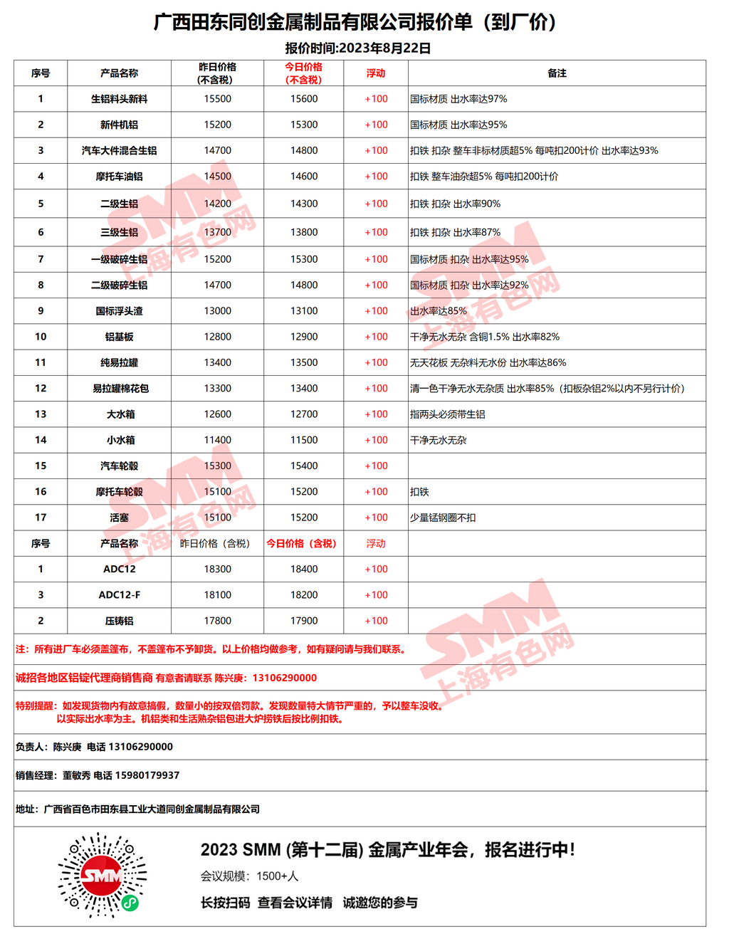 今日广西田东同创金属制品有限公司 废铝采购报价已更新,有货的朋友欢迎联系我们!