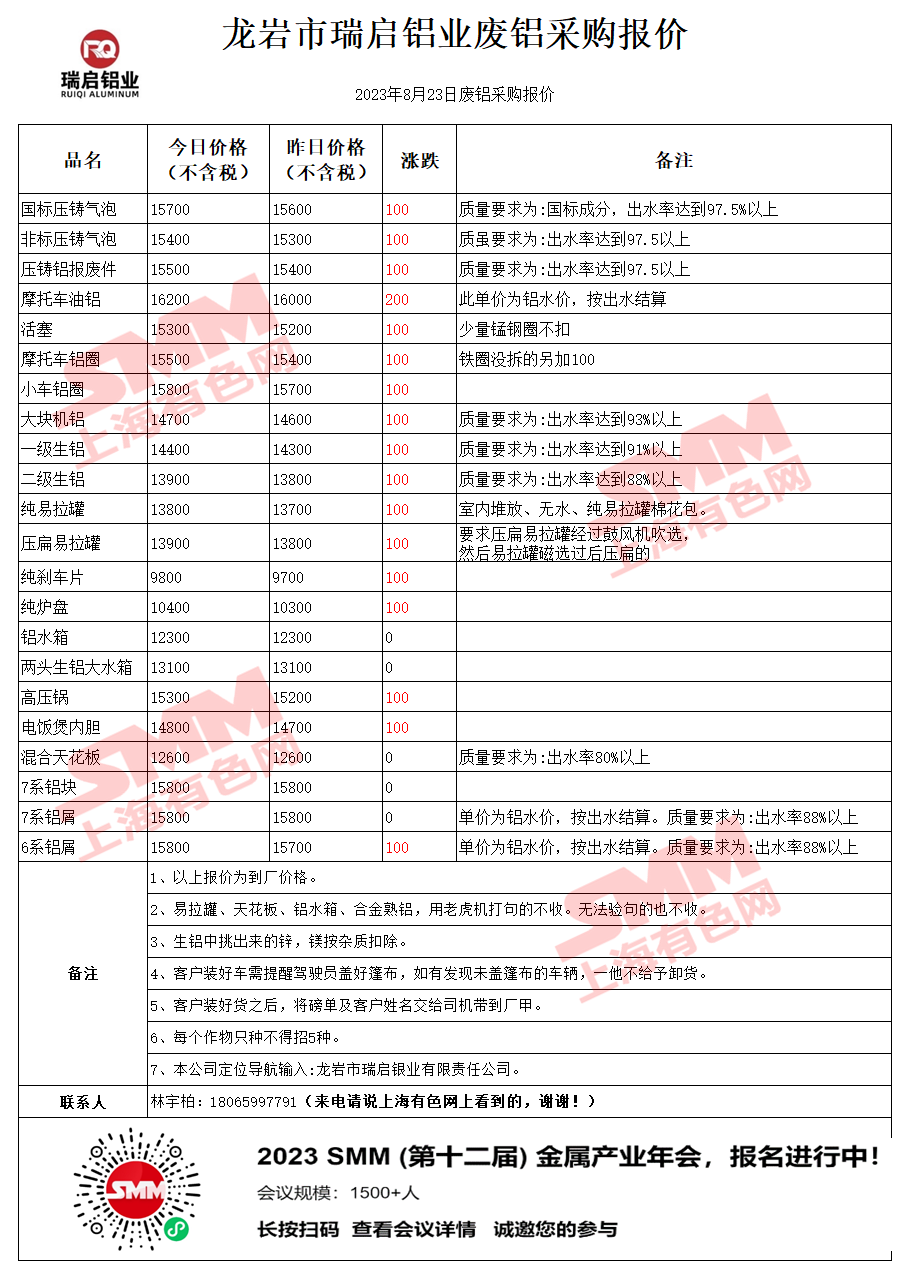今日龙岩瑞启 废铝采购报价已更新,有货的朋友欢迎联系我们!
