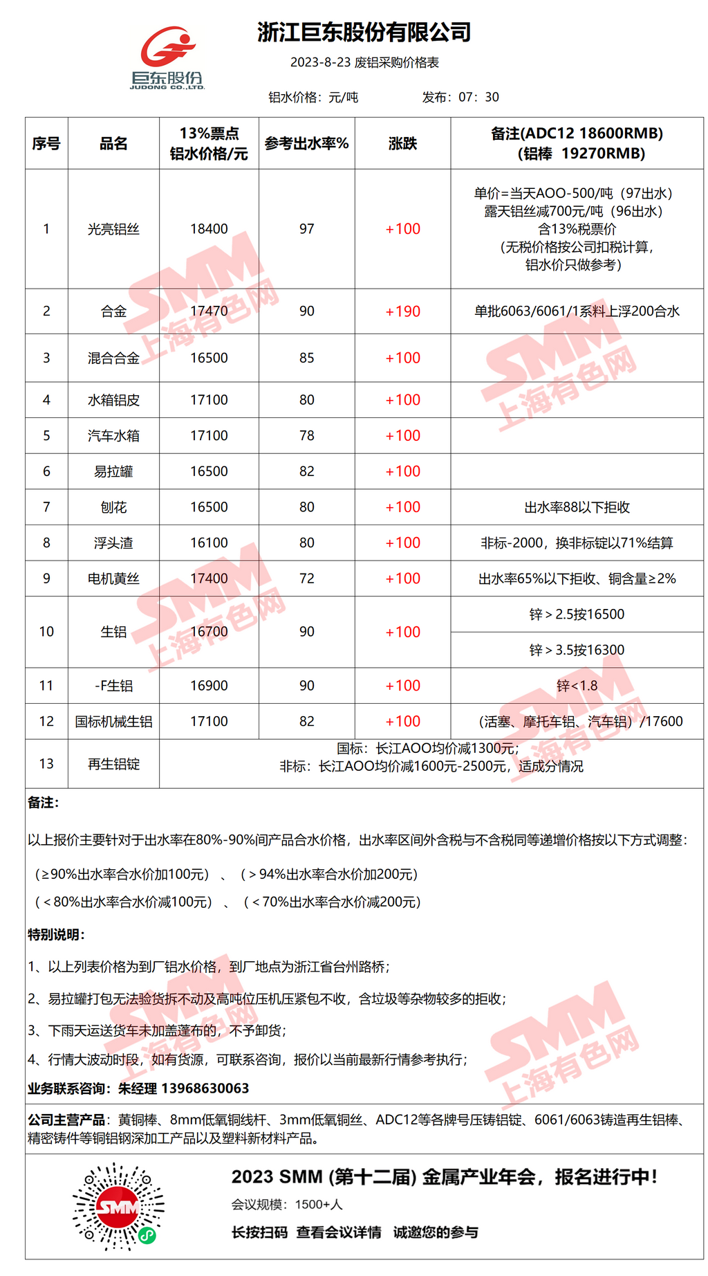 今日浙江巨东 废铝采购报价已更新,有货的朋友欢迎联系我们!