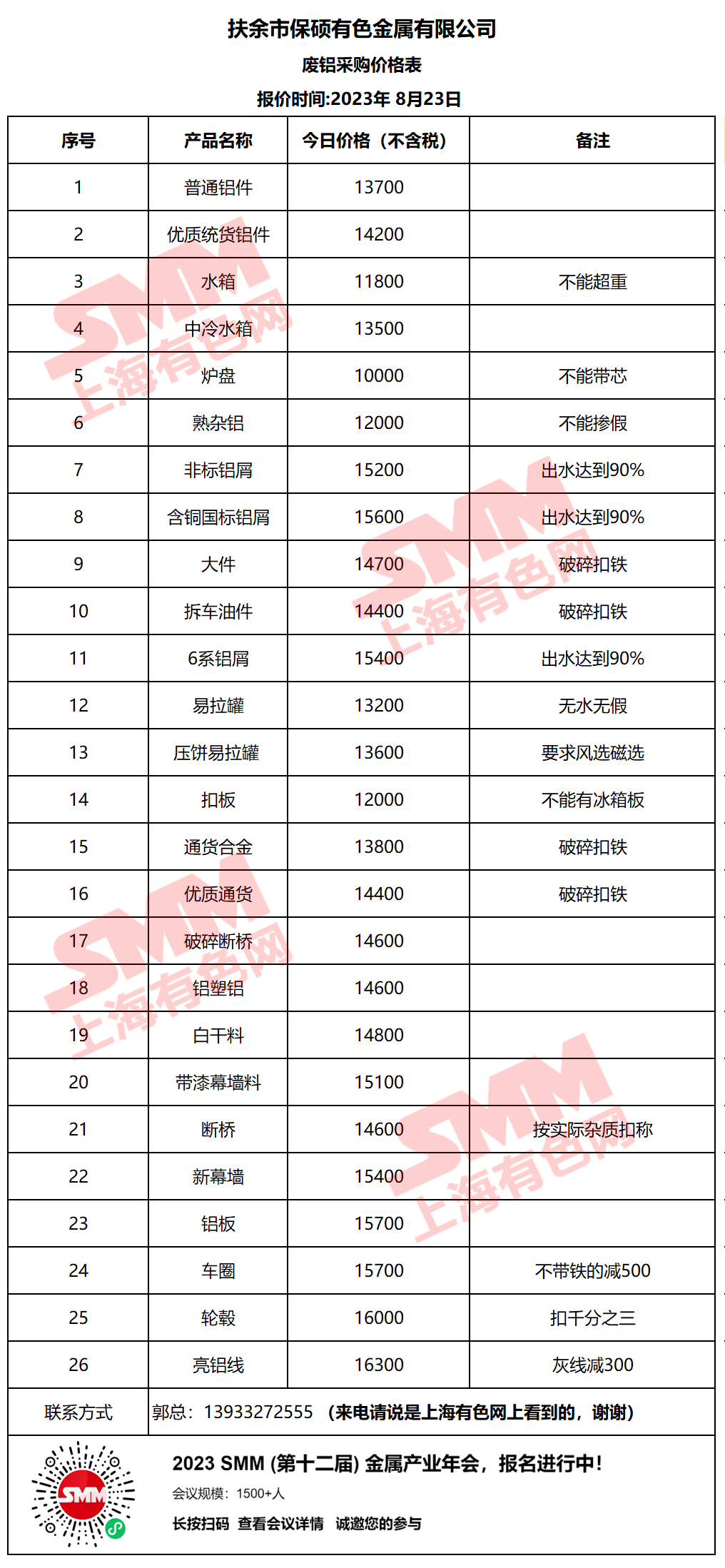 今日扶余市保硕有色金属有限公司 废铝采购报价已更新,有货的朋友欢迎联系我们!