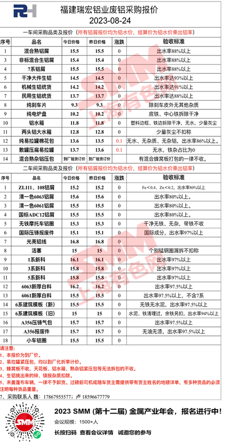今日福建瑞宏 废铝采购报价已更新,有货的朋友欢迎联系我们!