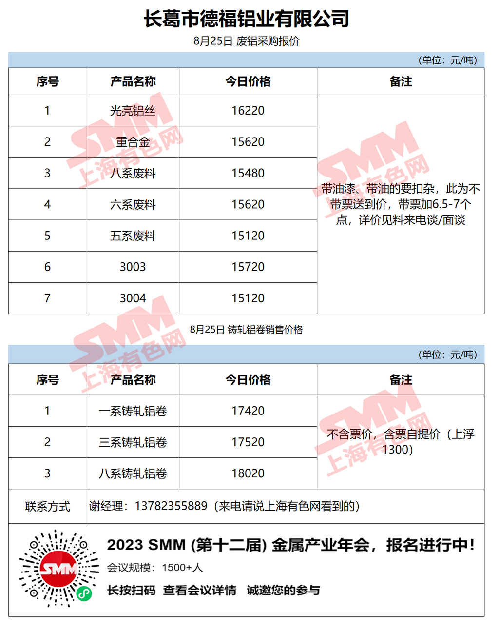 今日长葛德福铝业 废铝采购报价已更新,有货的朋友欢迎联系我们!
