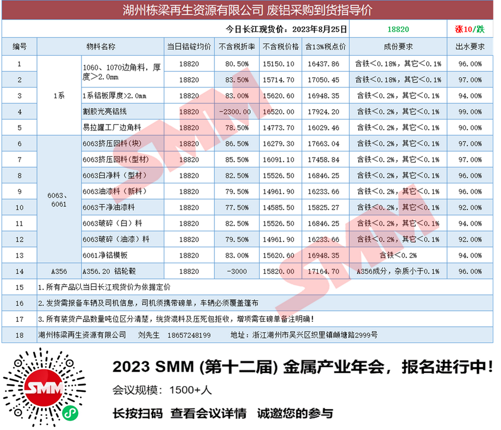 今日湖州栋梁 废铝采购报价已更新,有货的朋友欢迎联系我们!