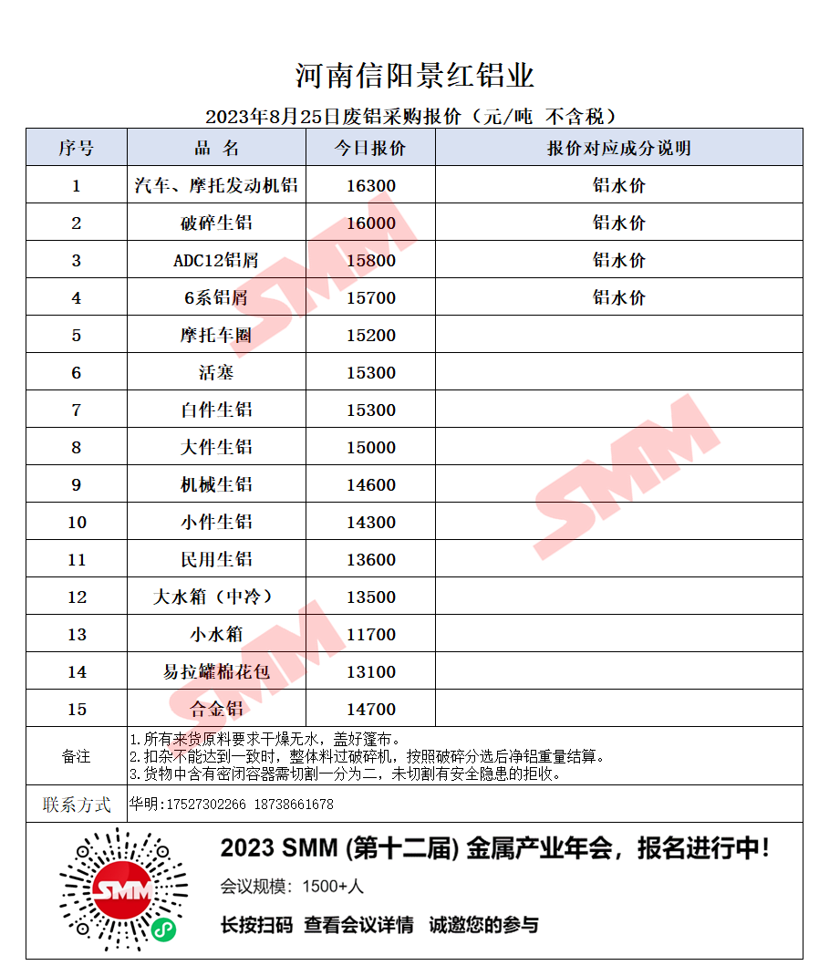 今日河南信阳景红铝业 废铝采购报价已更新,有货的朋友欢迎联系我们!