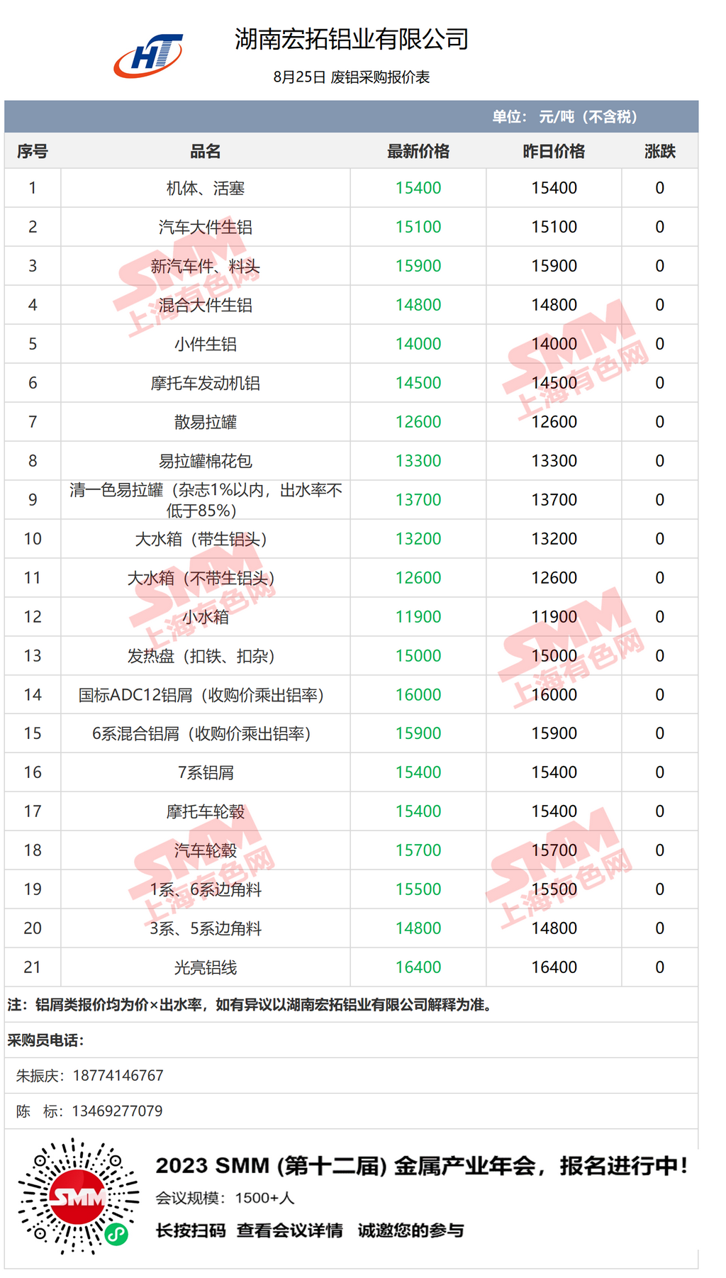 8月25日湖南宏拓铝业 废铝采购报价