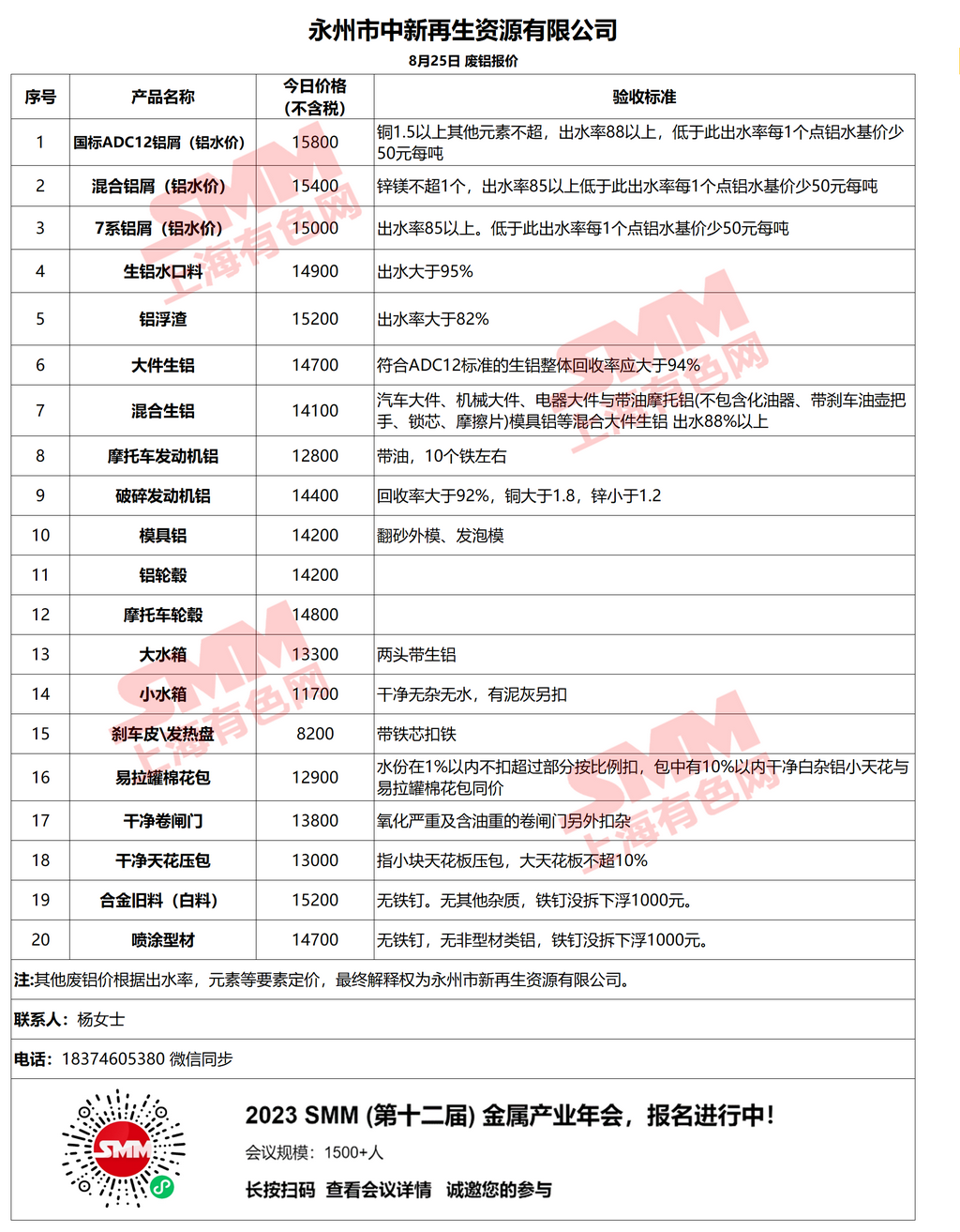今日永州市中新再生资源有限公司 废铝采购报价已更新,有货的朋友欢迎联系我们!