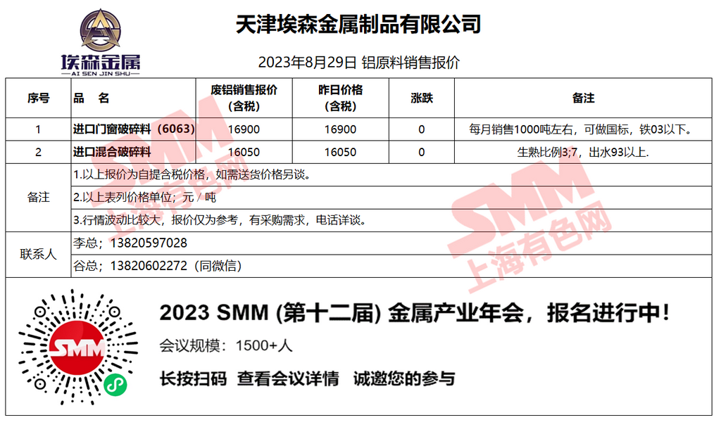 今日天津埃森 废铝销售报价已更新,有采购意向的朋友欢迎联系我们!
