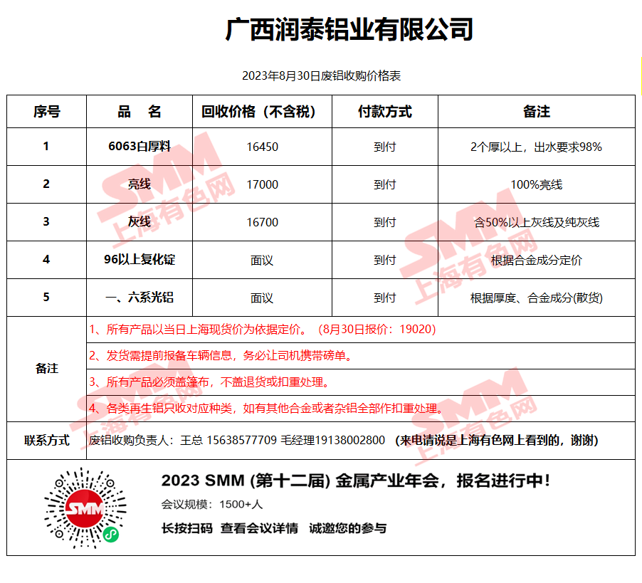 今日广西润泰铝业 废铝采购报价已更新,有货的朋友欢迎联系我们!