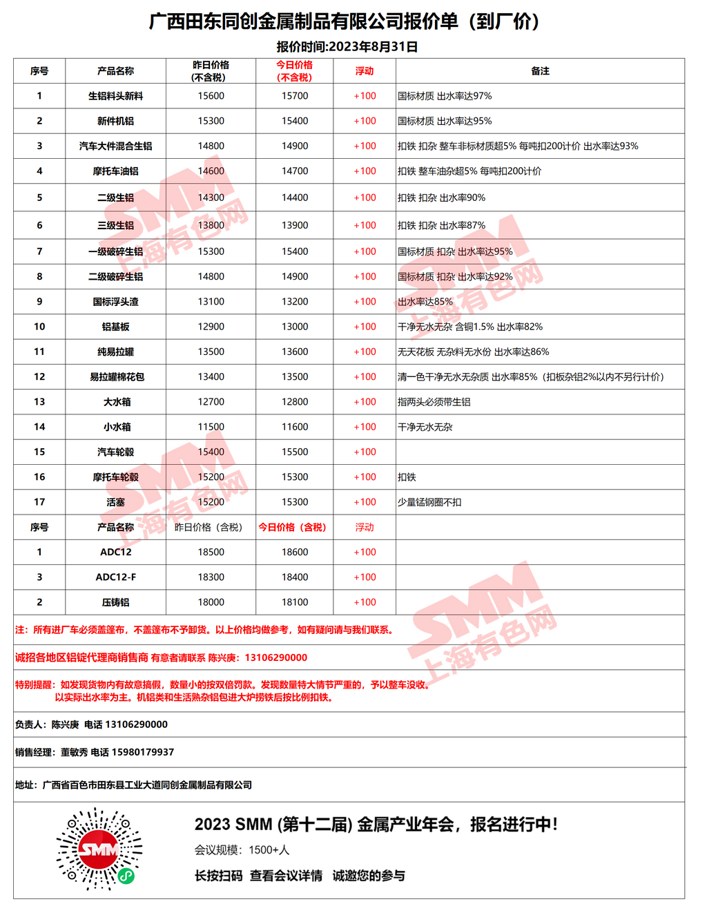 今日广西田东同创金属制品有限公司 废铝采购报价已更新,有货的朋友欢迎联系我们!