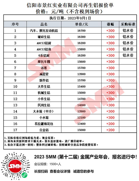 今日河南信阳景红铝业 废铝采购报价已更新,有货的朋友欢迎联系我们!
