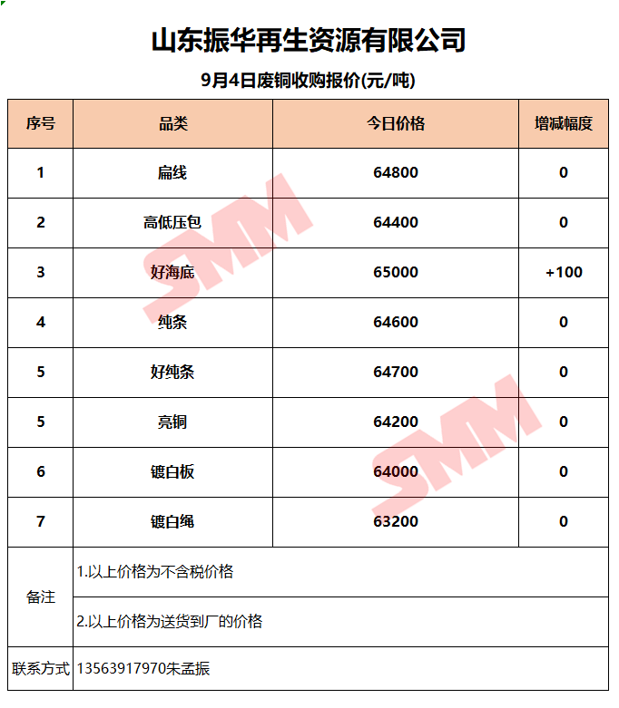 今日山东振华,废铜收购报价已更新,有货的朋友欢迎联系我们!