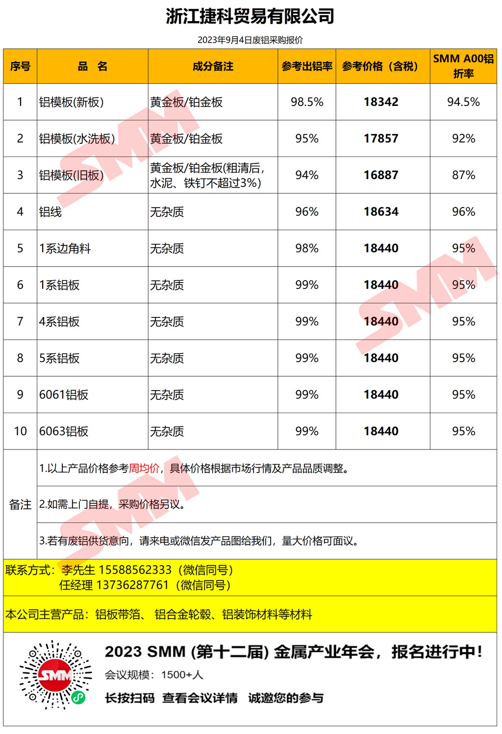 今日捷科贸易 废铝采购报价已更新,有货的朋友欢迎联系我们!