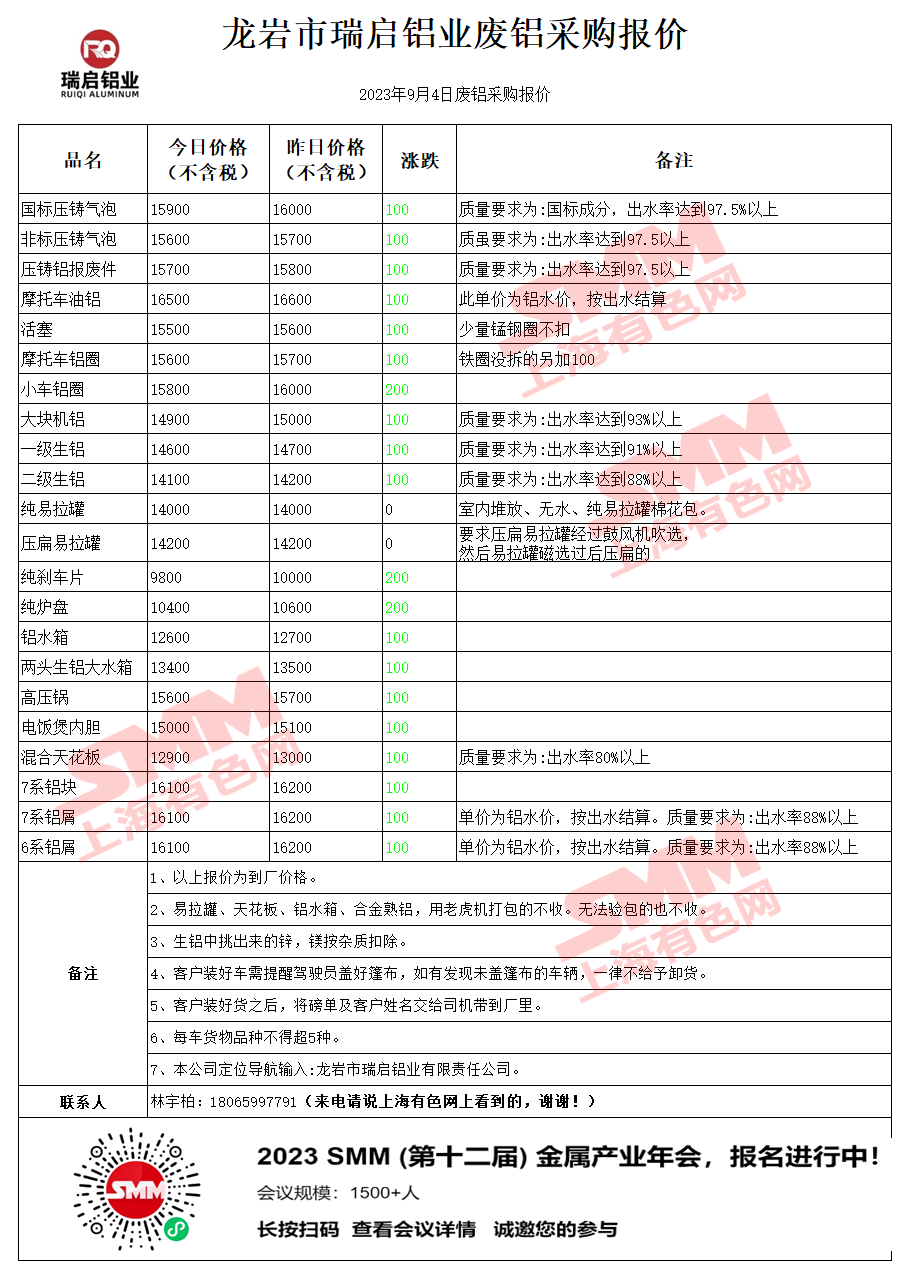 今日龙岩瑞启 废铝采购报价已更新,有货的朋友欢迎联系我们!