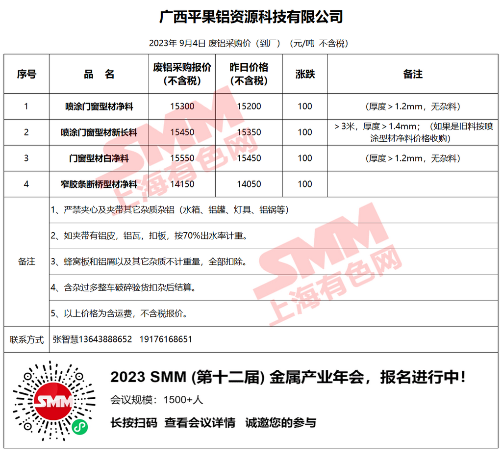 广西平果铝资源科技有限公司今日主要废铝料收购价目表已更新,有货的朋友欢迎联系我们!