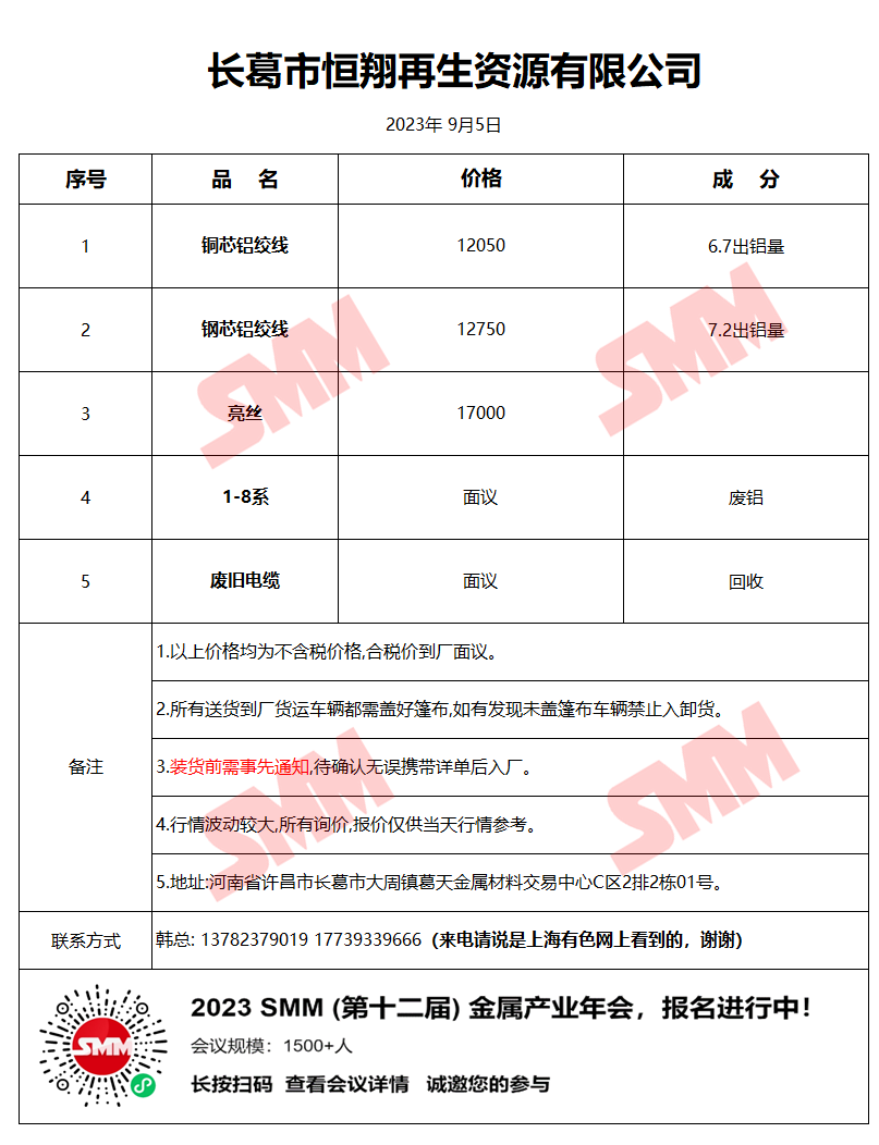 今日长葛恒翔 废铝采购报价已更新,有货的朋友欢迎联系我们!