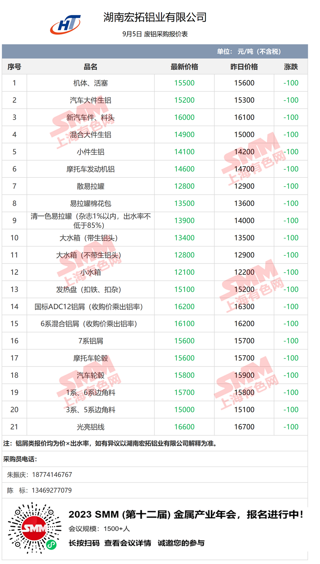 9月5日湖南宏拓铝业 废铝采购报价