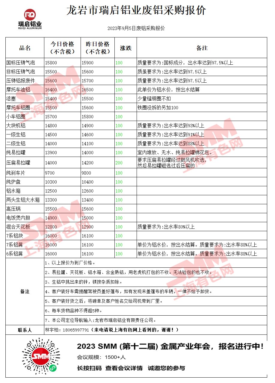 今日龙岩瑞启 废铝采购报价已更新,有货的朋友欢迎联系我们!