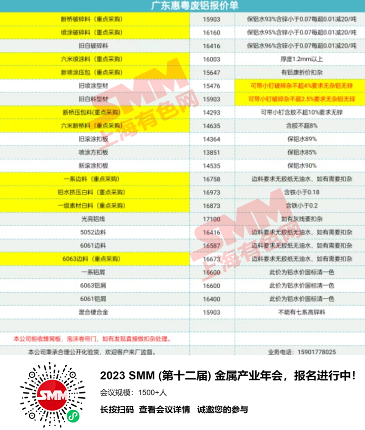 9月5日广东惠粤 废铝收购报价