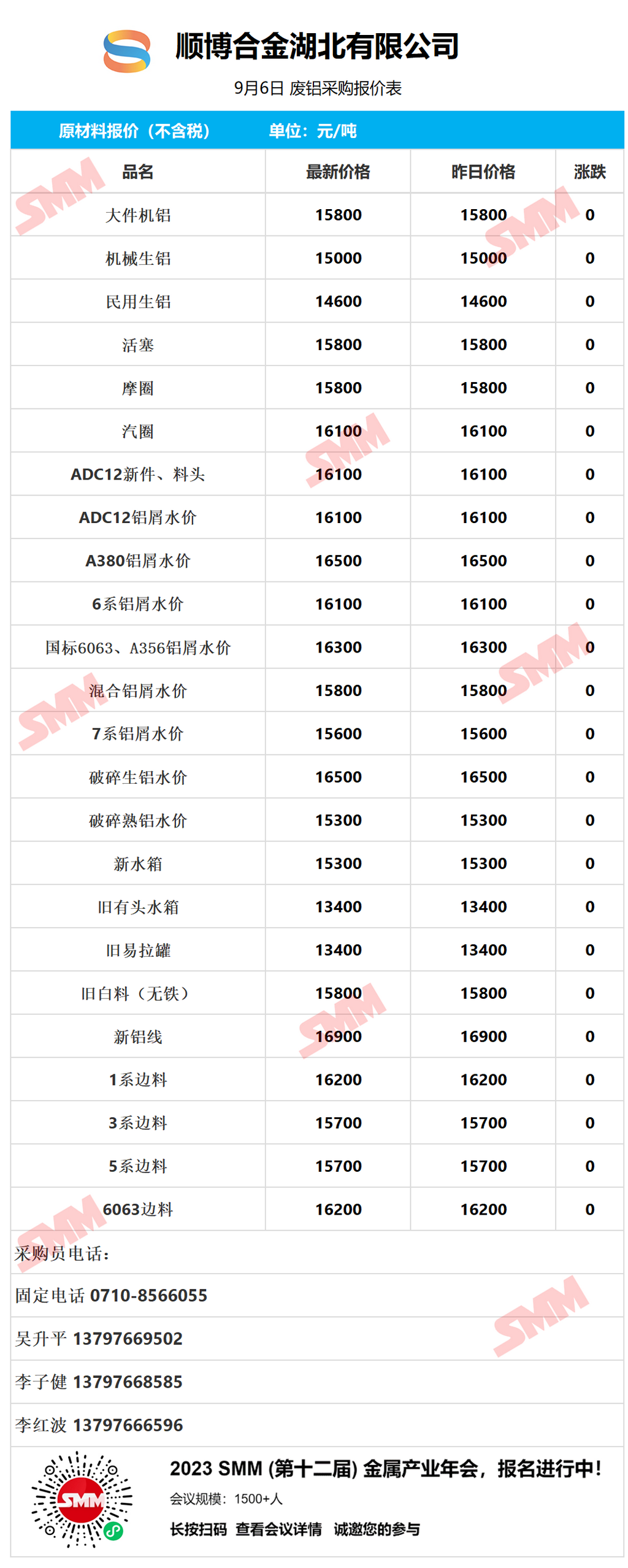 今日顺博合金湖北废铝采购报价已更新,有货的朋友欢迎联系我们!