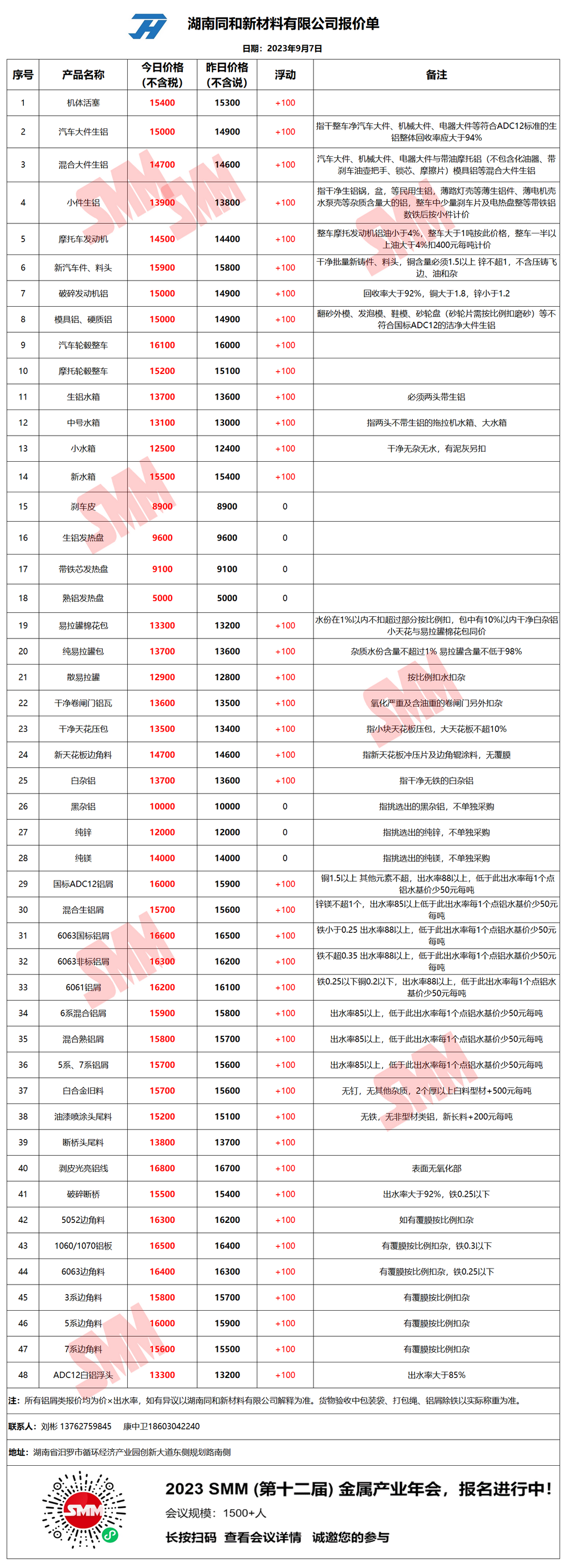 今日湖南同和 废铝采购报价已更新,有货的朋友欢迎联系我们!
