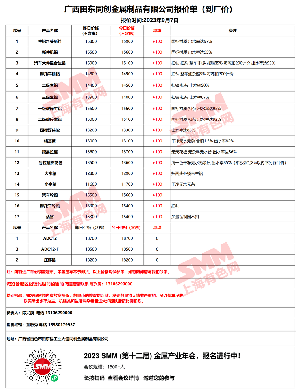 今日广西田东同创金属制品有限公司 废铝采购报价已更新,有货的朋友欢迎联系我们!