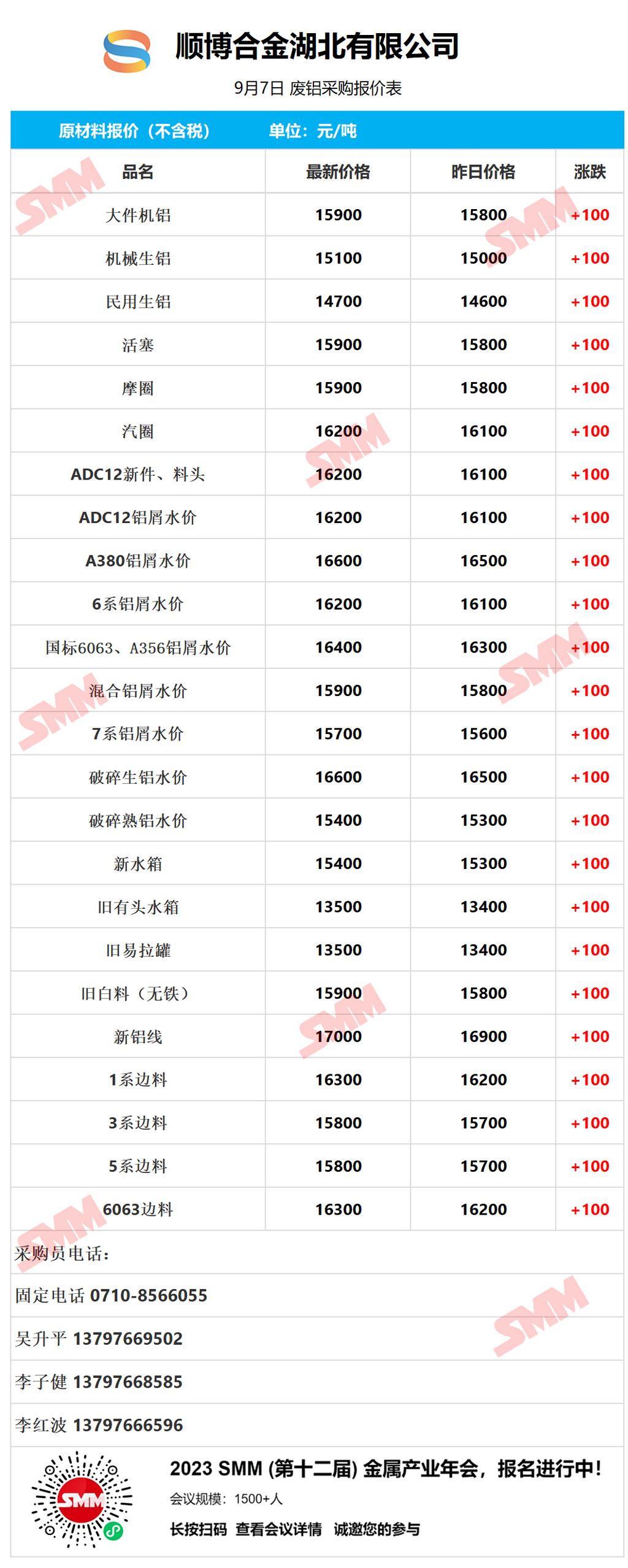 9月7日顺博合金湖北 废铝采购报价