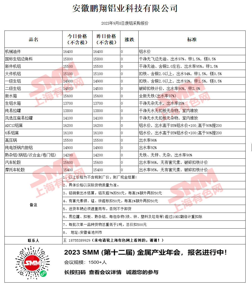 今日安徽鹏翔 废铝采购报价已更新,有货的朋友欢迎联系我们!