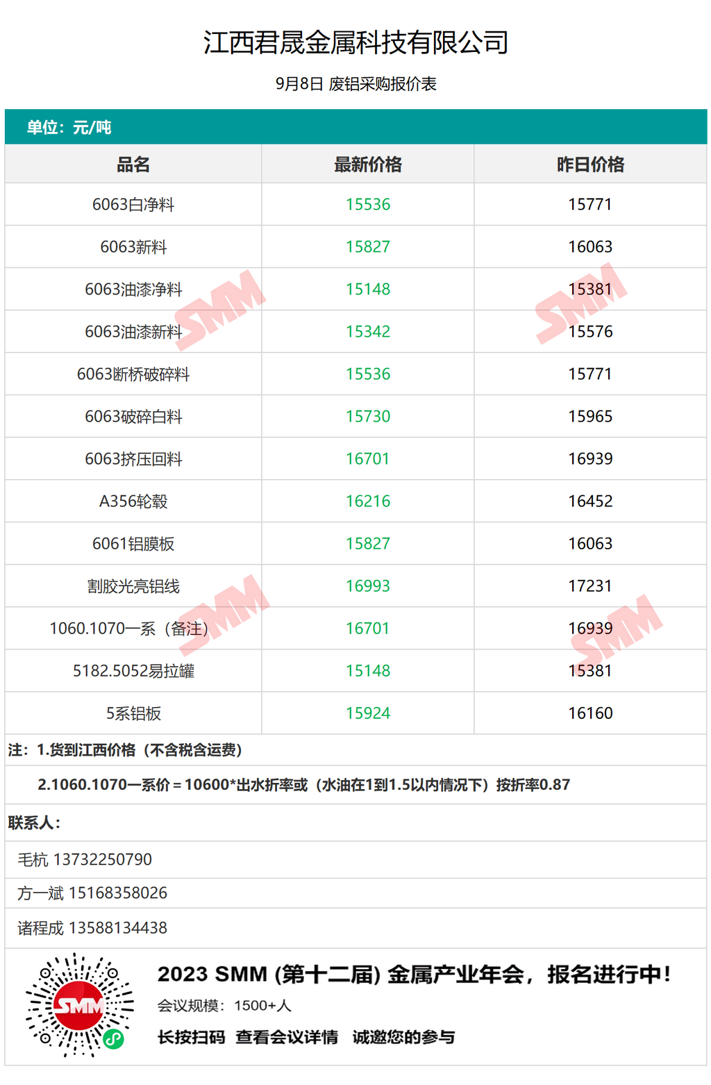 今日江西君晟金属 废铝采购报价已更新,有货的朋友欢迎联系我们!