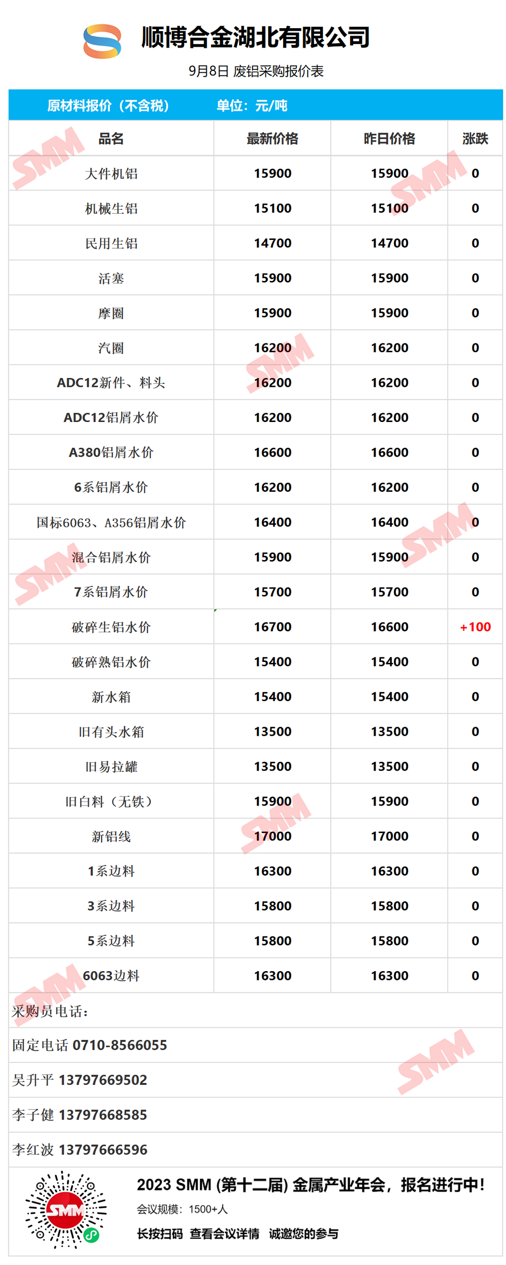 今日顺博合金湖北废铝采购报价已更新,有货的朋友欢迎联系我们!
