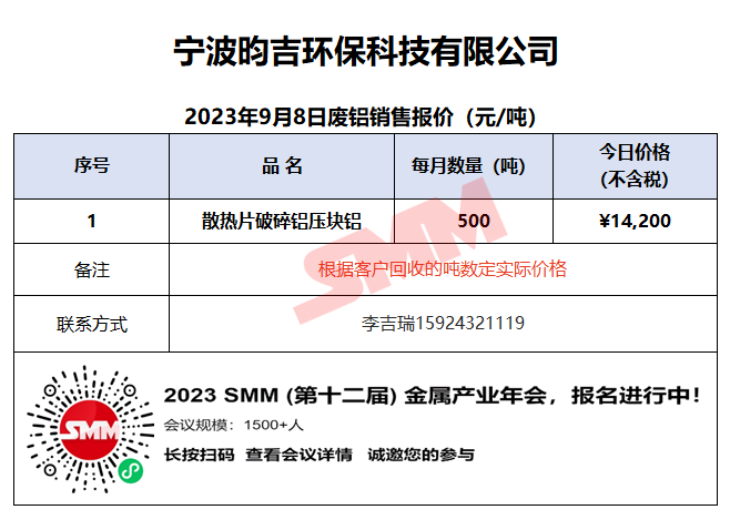 9月8日宁波昀吉 废铝销售报价