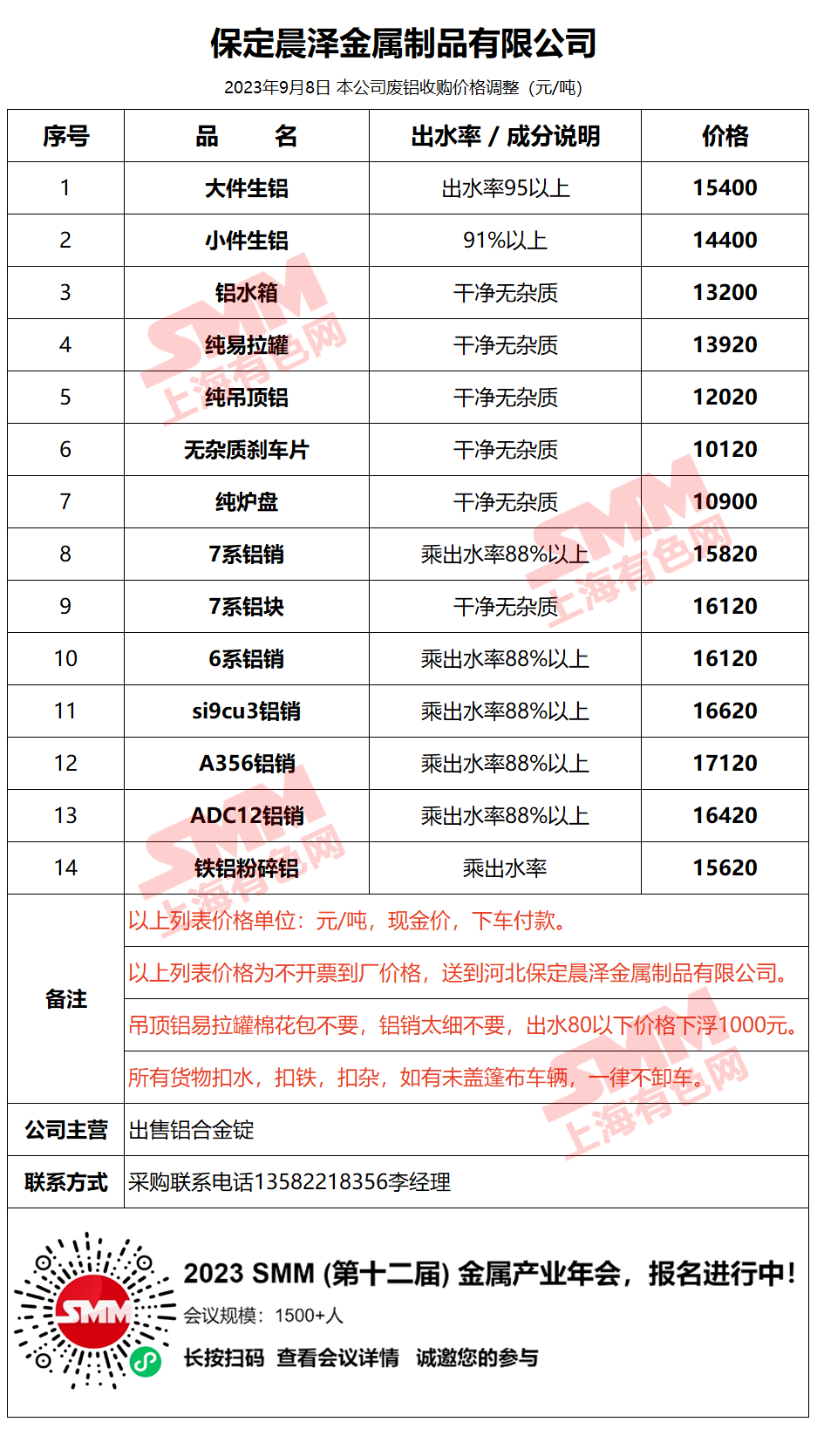 今日保定晨泽金属制品有限公司 废铝采购报价已更新,有货的朋友欢迎联系我们!