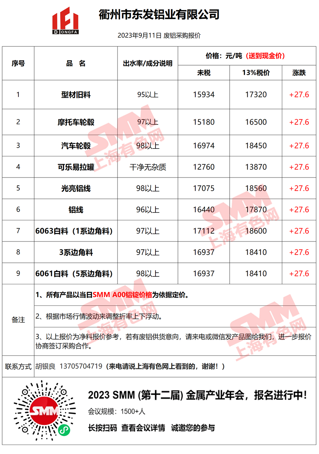 9月11日衢州东发 废铝采购报价