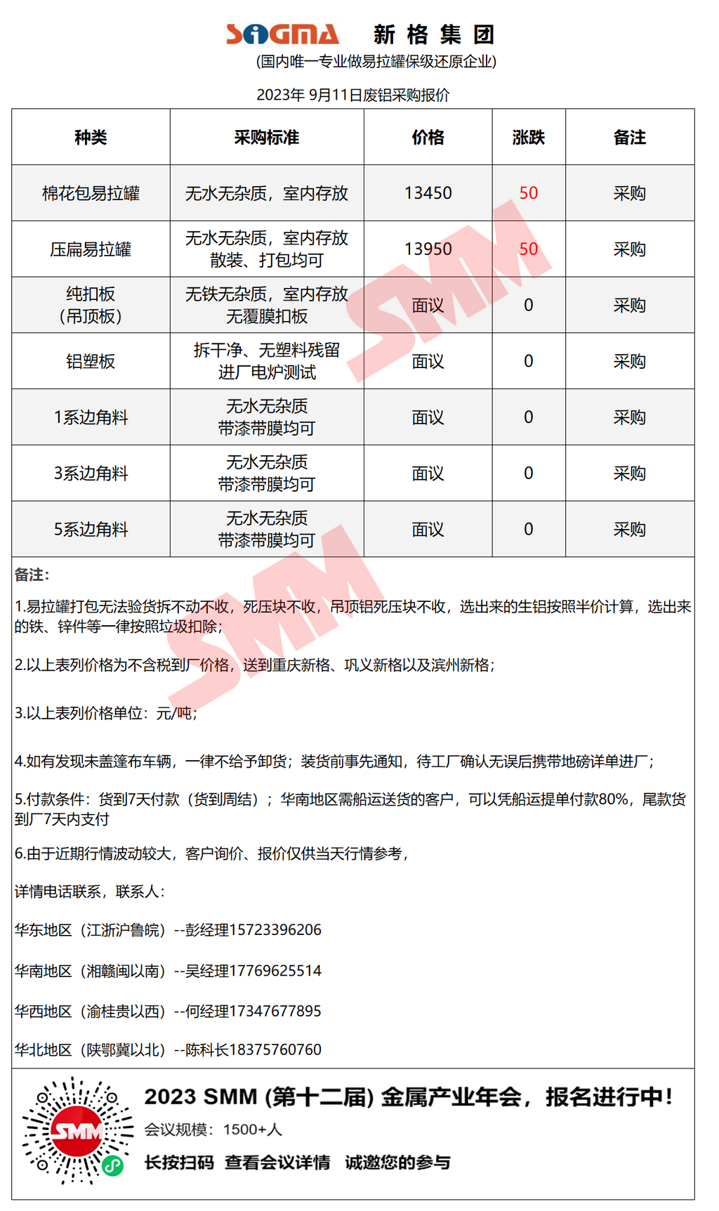 9月11日新格集团 废铝采购报价