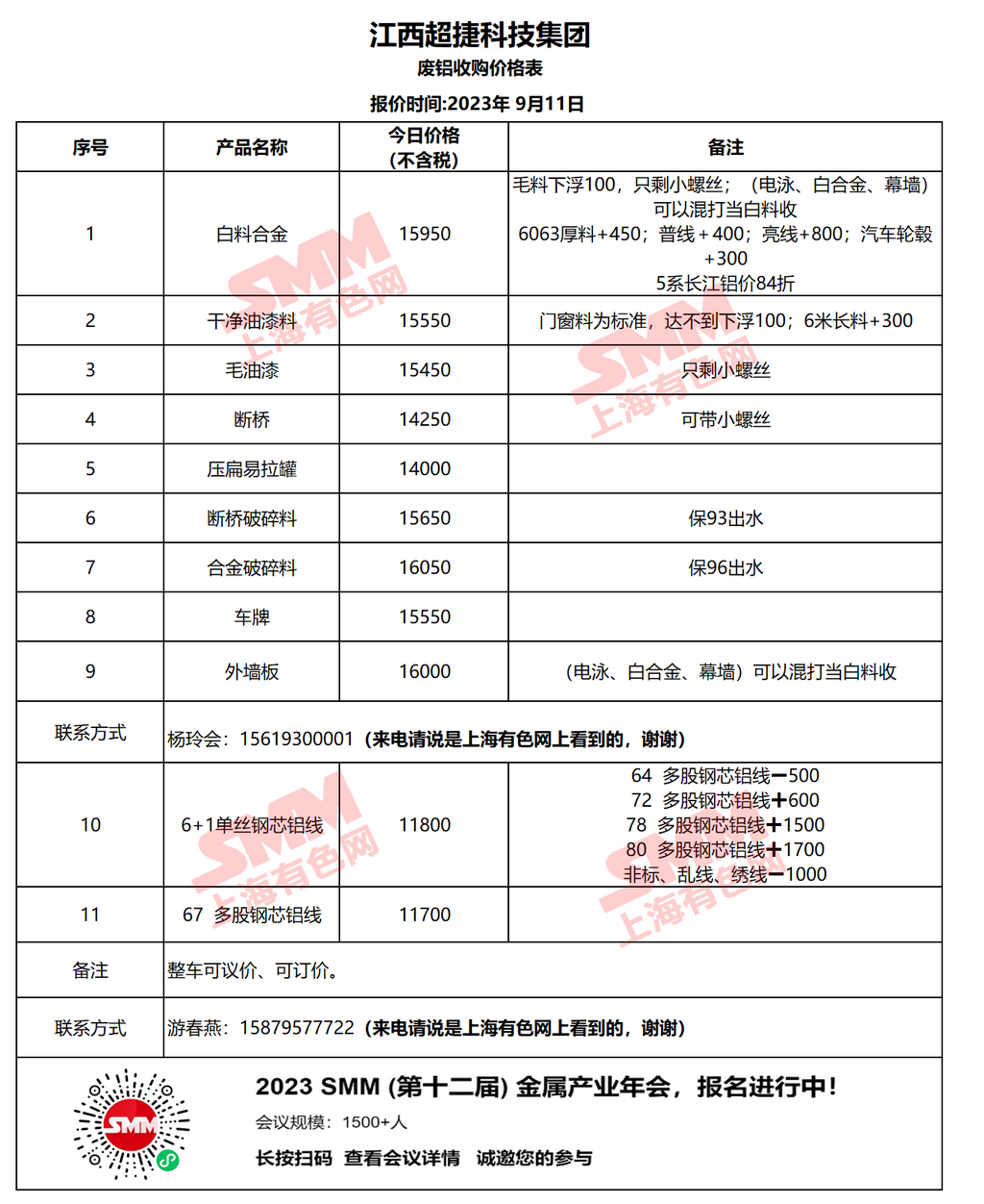 今日江西超捷科技集团 废铝收购报价已更新,有货的朋友欢迎联系我们!