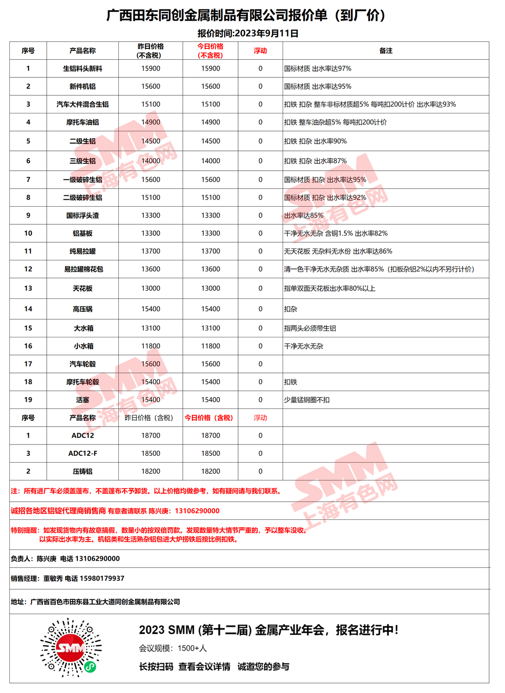 今日广西田东同创金属制品有限公司 废铝采购报价已更新,有货的朋友欢迎联系我们!
