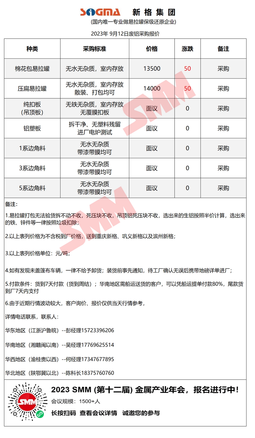 今日新格集团 废铝采购报价已更新,有货的朋友欢迎联系我们!