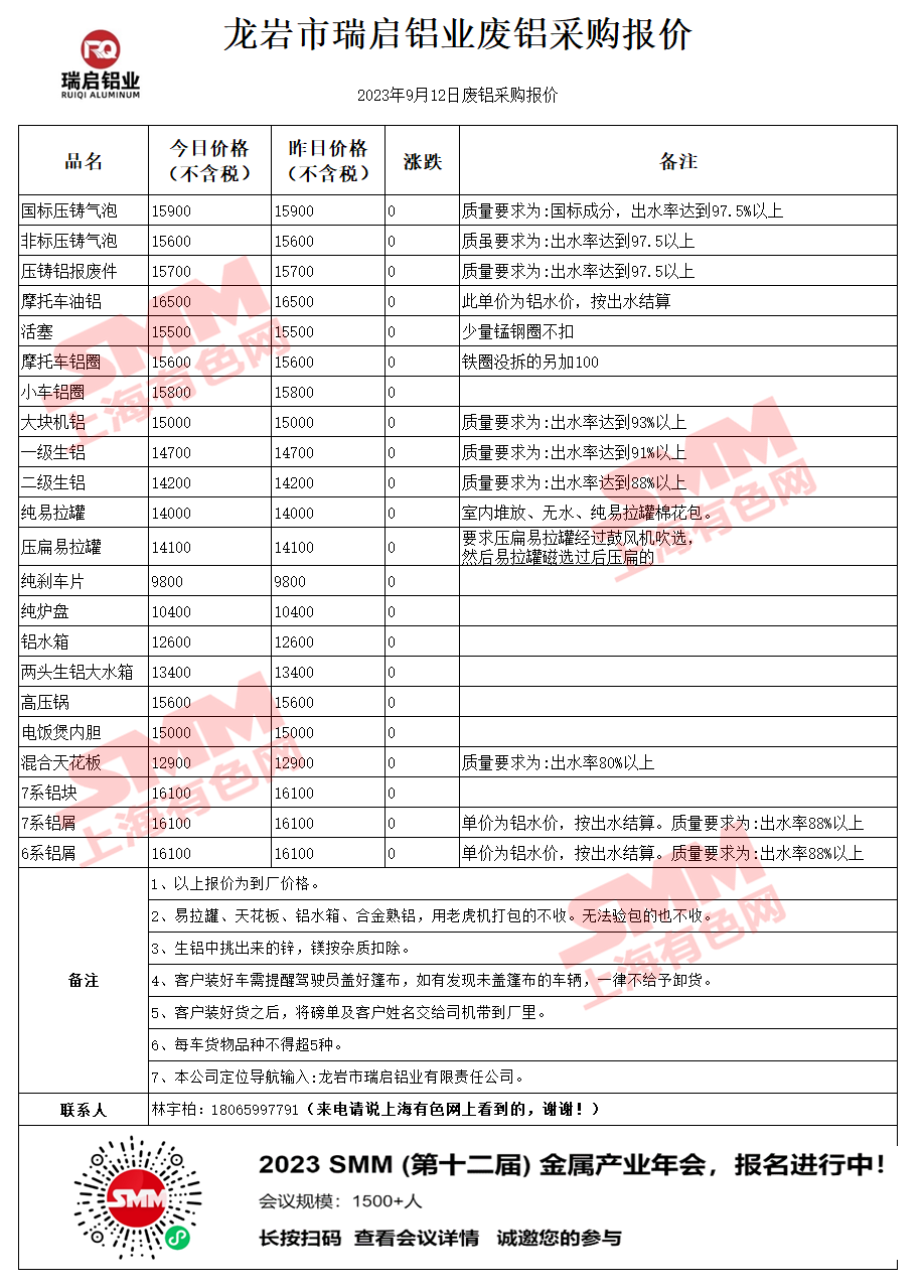 今日龙岩瑞启 废铝采购报价已更新,有货的朋友欢迎联系我们!