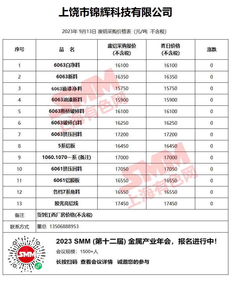 今日上饶锦辉 废铝采购报价已更新,有货的朋友欢迎联系我们!