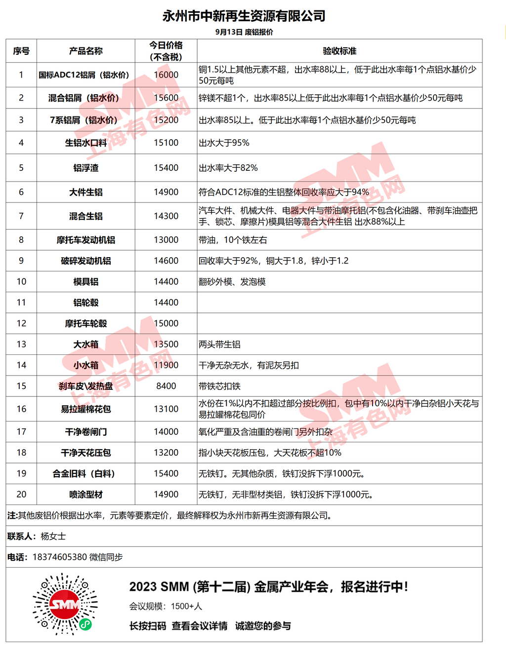 今日永州市中新再生资源有限公司 废铝采购报价已更新,有货的朋友欢迎联系我们!